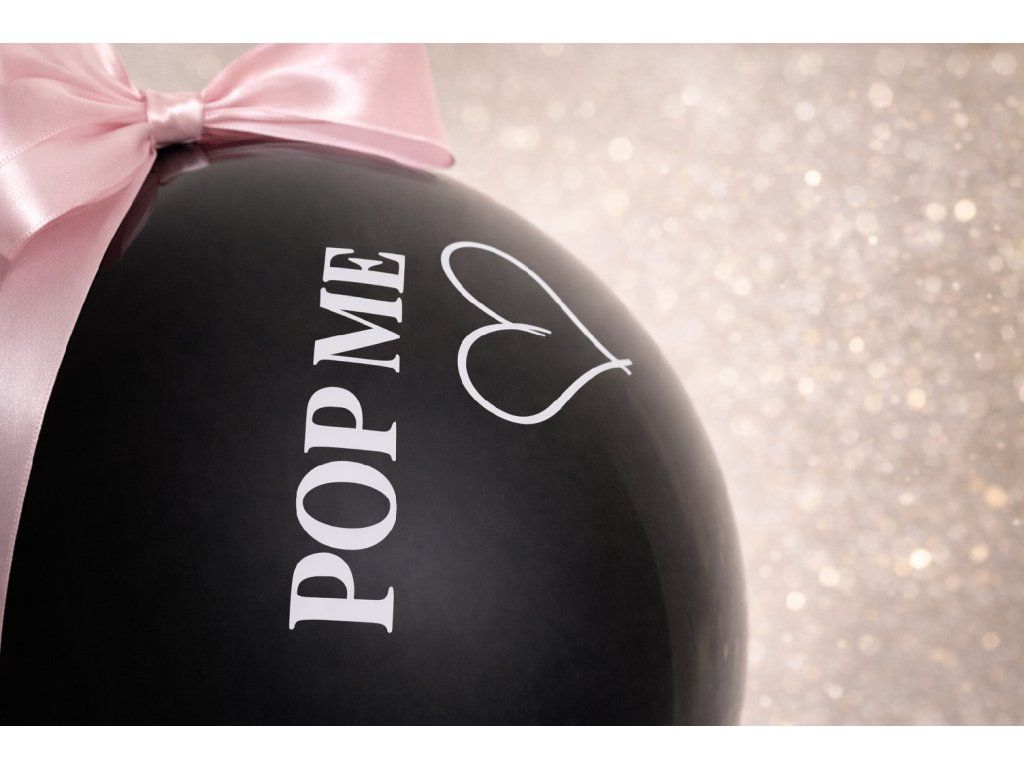• vnitřní balonek: černý latexový balonek plněný růžovými nebo modrými konfetami