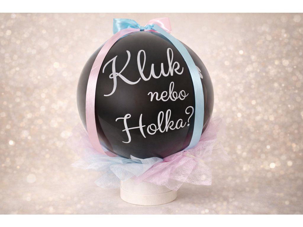 • nápis na vnitřním balónku: Kluk nebo holka?