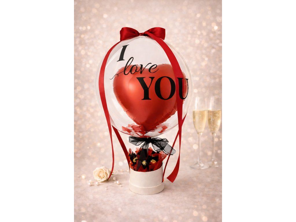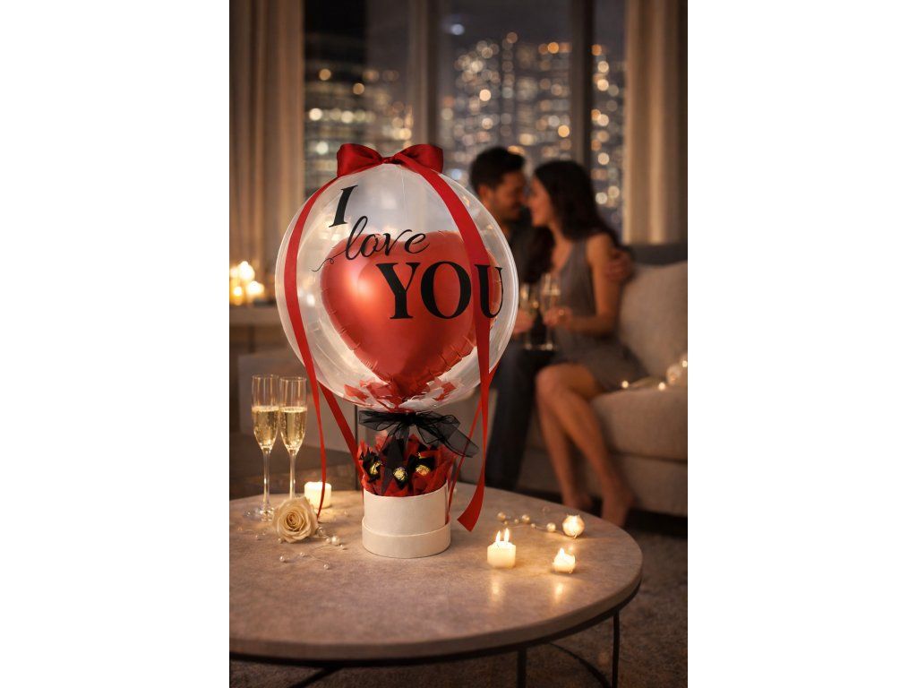 Elegantní balónkový dárek Z lásky spojuje romantickou atmosféru s luxusním designem. Průhledný balonek s červeným srdcem a sladkým překvapením Ferrero Rocher vytváří originální dárek, který je připravený rovnou k předání. Ideální jako romantické gesto k Valentýnu, výročí nebo kdykoli, kdy chcete říct „miluji tě“ jinak než slovy.